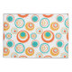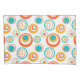 Esta fronha tem uma design moderna do século médio de círculos concêntricos em ouro, laranja e turquesa sobre fundo branco.