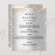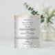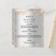 Um cartão de cardápio de casamento elegante e glamouroso. Personalize e adicione seus nomes, data e menu de casamento. Fundo de aspecto fino prateado, decorado com faxes dourados.