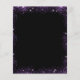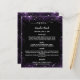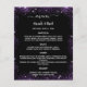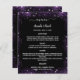 Um elegante e glamouroso menu de casamento. Um fundo preto, decorado com brilho sujo roxo, brilhos. Texto branco. Personalize e adicione seu nome, datas e o menu. Você pode adicionar mais texto, fotos no verso. 1 folha = 1 menu impresso borda a borda.