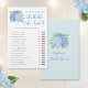 Este jogo de chá de panela é um jogo que ele disse, ela disse adivinhem quem disse. Apresenta flores de hidrocorante azul de hydrangea. Personalize a parte de trás do cartão com o nome da noiva. Produtos correspondentes disponíveis.