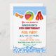 Bola de praia divertida, nadadeiras, óculos de praia, cores azuis, festa de Natação, Piscina de aniversário, Convite de festas de Piscina
