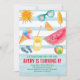 Convide seus amigos para se divertirem ao sol com este convite de aniversário temático de Verão, com todas as coisas no verão, incluindo melancia, sorvete, limonada, chinelos, fruta e arte ensolarada! Brilhante e colorido, este convite é excelente para rapazes ou raparigas.