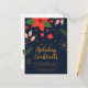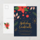 Envie este convite de férias com um design divertido apresentando poinsettias e frutas de Natal.