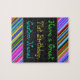 Este divertido, colorido e caprichoso design de aniversário do tema quebra-cabeça de apresenta um desejo de aniversário caloroso como "Tenha um Excelente 71rua Aniversário, Nome Personalizado!". O nome pode ser personalizado. Há também listras multicoloridas na parte superior e inferior. Um quebra-cabeça assim poderia ser uma maneira divertida de fazer votos de aniversário a alguém que comemora seus setenta anos. [~Z0000268]