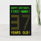 A frente deste nerd design de cartões de aniversário personalizados apresenta as mensagens "FELIZ ANIVERSÁRIO" e "37 ANOS VELHO!", juntamente com um nome de destinatário personalizado. As mensagens na frente têm um estilo de videogame de escola antiga e pixelizado. Os dígitos do grande número "37" na frente são eles próprios formados por dígitos "3" ou "7" de tamanho menor, dando a uma arte ASCII um olhar inspirado. O dentro apresenta uma mensagem de saudação de aniversário que pode ser editada. Um estilo geek, um cartão de saudação de aniversário personalizável como este pode ser uma maneira divertida de enviar uma mensagem de saudação de aniversário a alguém que comemora seu trinta e sete anos. [~Z0000366]