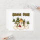 Três homens de neve se divertem brincando na neve e o texto diz "Divertimento na neve!" em T-shirts, capuzes, canecas, cartões, adesivos, sacos de tote, e outros roupa e presentes do boneco de neve.
