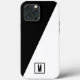 Quando o clássico encontra elegância moderna! Esta na moda e elegante Capa de telefone monocromática em preto e branco é um imperativo para todos os amantes do minimalismo. Com triângulos geométricos, ela dividiu a capa de telefone em duas metades de elegância de constrição. Simples, mas, mesmo assim, na moda e tendências, esta capa de telefone irá proteger seu telefone de todos os altos e baixos, mas mostrará sua elegância, e virará a cabeça. A constância de cores entre branco e preto equilibra o monocromo de sombra e luzes, inspirada na cultura chinesa yin e yang. Esta capa de telefone também pode ser facilmente editável, pois apresenta as iniciais personalizadas da Tipografia retrorvintage, com monogramas a tinta preta, na metade branca, para permitir que você adicione um pouco de brilho e ofereça a você, entes queridos.