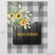 Página de separador de capítulo de texto personalizado para o organizador de receitas do estilo rústico do país com buquê de girassóis, madeira de celeiro e padrão de gingham de verificação de xadrez preto e branco. +++++++++ Personalize-o com o seu texto (título da categoria de receita) e chef ou o seu monograma da família / nome inicial!