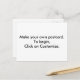 Design os seus postais personalizados online. Clique em Personalizar para começar. Clique em Adicionar imagem para carregar uma imagem, imagem a partir do computador. Você pode clicar na imagem depois que ela for carregada para movê-la e redimensioná-la. Você pode excluir o texto que é mostrado pelo espaçamento inverso na caixa de texto ou digitar em novo texto. Após digitar o texto, você pode escolher o estilo, o tamanho e a cor da fonte (f). Obrigado por comprar CherylsArt no Zazzle.