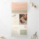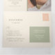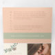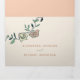 Este convite de casamento romântico e ecológico de três dobras apresenta blocos de cores suaves em rosa, verde sálvia e marfim com detalhes florais desenhados à mão e um espaço para sua foto. Inclui detalhes do casamento, um cartão RSVP destacável (com endereço de devolução impresso no verso) e um painel traseiro com seu monograma e data. Embora compacto e elegante, este design ainda requer um envelope.