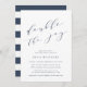 Simples e elegante convite de chá de fraldas para gêmeos no caminho apresenta "o dobro da alegria" em letras de caligrafia moderna azul marinho chic. Personalize com os detalhes do seu chá de fraldas duplo abaixo. Os convites para chuveiros de bebês invertem-se para grandes faixas azuis e brancas. Personalize o tipo ou forma de papel para tornar este design elegante seu próprio.