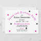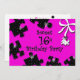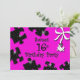Excelente 16º Convite de aniversário para a jovem que por acaso ama quebra-cabeça. Dezesseis doces com quebra-cabeça pretas e bolinhas brancas sobre fundo rosa fuchsia e fita branca grande