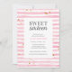 Trendy e moderno e doce Convite de aniversário com dezesseis listras cor-de-água cor-de-rosa e correspondência com a página traseira. © Mini Moi Impressões