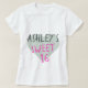 A camiseta de 16 anos e 16 apresenta seu nome e o texto doce 16 em uma simples tipografia manuscrita moderna, em rosa brilhante na moda e preto em um coração verde pastel. Desenvolvido exclusivamente para você pelo Happy Dolphin Studio.