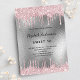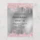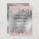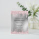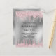 Um convite moderno, na moda e glamouroso para uma doce festa de aniversário 16, 16. Um fundo metálico prateado com aspecto elegante com um brilho brilhante, cor-de-rosa, pingando tinta. O nome é escrito com um script estilo preto moderno, escrito à mão. Personalize e adicione um nome, idade e detalhes da festa. Traseira: fundo prateado falso e design postal. Dica: Se você não quiser que pareça um cartão postal, clique em personalizar, vá para o verso e remova o divisor e o carimbo de posto.