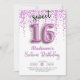 Doce 16 balões roxos, convite de aniversário.