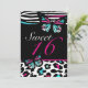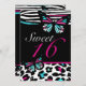 Este convite para a impressão de animais brilhantes, com manchas neon-leopardo e listras zebra, é perfeito para qualquer Sweet 16.