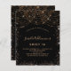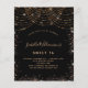 Para um doce elegante 16, 16 anos. Um fundo na moda preto. Decorado com brilho de ouro falso e cordas de luz de ouro. Personalize e adicione um nome, idade e detalhes da festa. O nome é escrito com um script de estilo manuscrito. 1 folha = 1 convite impresso de borda a borda.