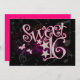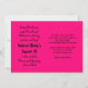 O texto no verso deste convite de 16 anos é perfeitamente personalizável. Para alterar o texto, use a opção personalizar. Para alterações mais abrangentes, como alterações na fonte, cor da fonte, tamanho da fonte ou layout de texto, use a opção personalizar. As cores neste convite são rosa quente e preto.