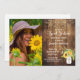 Doce 16 modelo com foto, madeira rústica, luzes de corda e um pote de pedreiro com girassóis. Para acessar ferramentas avançadas de edição, vá para o link "Personalizar" e, em seguida, "clicar para personalizar mais".