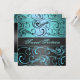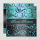 Convite de Aniversário do Elegante Sweet 16 Black/Blue Swirl, também disponível em outras cores.