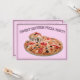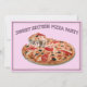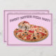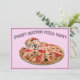 Este convite é decorado à frente com as palavras "Doce 16 Pizza Party" e uma pizza.