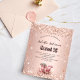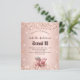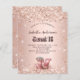 Um fundo rosa de gradiente dourado decorado com confete e uma carruagem de vintagem romântica. Personalize e adicione seu nome, detalhes da festa. 1 folha = 1 convite impresso de borda a borda.