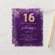 Celebre um doce 16 especial com este convite maravilhoso, perfeito para uma festa elegante. O fundo roxo profundo apresenta uma bela textura irregular, acentuada por rosa dourado e ouro falso brilho para um toque de brilho. O nome é escrito em um texto delicado, escrito à mão, acrescentando um toque personalizado e sofisticado. Personalize o convite adicionando o nome da aniversariante e todos os detalhes importantes da festa. Este design luxuoso dá o tom para uma celebração inesquecível. 1 folha = 1 convite impresso de borda a borda.