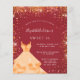 Um convite moderno, na moda e glamouroso para uma doce festa de aniversário 16, 16. Um fundo vermelho de moda com poeira dourada falsa vermelha e um vestido de ouro. O nome é escrito com um moderno estilo escrito à mão. Personalize e adicione os detalhes da sua festa.