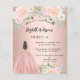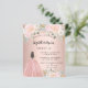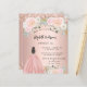 Um convite moderno, na moda e glamouroso para uma doce festa de aniversário 16, 16. Um fundo rosa de ouro com flores cor-de-rosa pinceladas, uma garota vestindo um vestido de bola. O nome é escrito com um moderno estilo escrito à mão. Personalize e adicione os detalhes da sua festa. 1 folha = 1 convite impresso de borda a borda.