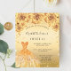 Um convite moderno, na moda e glamouroso para uma doce festa de aniversário 16, 16. Um fundo de ouro falso com pó de ouro falso, um vestido e rosas, florais. O nome é escrito com um moderno estilo escrito à mão. Personalize e adicione os detalhes da sua festa.