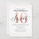 Um na moda e elegante Sweet 16, 16º convite de aniversário. A palavra doce está em uma fonte de script sobre um rosa dourado número 16. A borda é decorada com bolinhas de folha de ouro rosa. A parte traseira da placa tem fundo de folha rosa dourada com bolinhas brancas.Personalize-a com um nome e os detalhes da parte. Projetado para você, Boulevard.