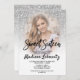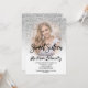Um doce e glamouroso convite fotográfico de 16 em brilho prateado e branco. Perfeito para dar o tom para uma elegante festa 16. Verifique nossos itens correspondentes para favoritos para festas e decorações no mesmo design.