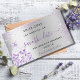 Uma cinta e moda Salve o cartão magnético Date para uma doce 16, 16 festa de aniversário. Um fundo metálico moderno, falso e prateado, decorado com poeira brilhante púrpura e um vestido. Personalize e adicione uma data e um nome. Letras pretas e roxas coloridas. O texto: Salvar a Data é gravado com um script de estilo com letra de tendência grande.