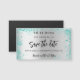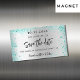 Uma cinta e moda Salve o cartão magnético Date para uma doce 16, 16 festa de aniversário. Um fundo com aparência de prata falsa, decorado com pó brilhante verde e lacrimejante. Personalize e adicione uma data e nome/idade. O texto: Salvar a Data é gravado com um script de estilo com letra de tendência grande.