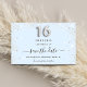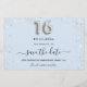 Uma garota e moda Salve o cartão de data para uma doce festa de aniversário 16, 16. Um fundo azul bebê decorado com pó falso de prata brilhante. Personalize e adicione uma data e nome/idade. O texto: Salvar a Data é gravado com um script de estilo com letra de tendência grande. Número 16 com uma fonte no estilo do balão.