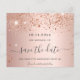 Uma garota e moda Salve o cartão de data para uma doce festa de aniversário 16, 16. Um fundo metálico cor-de-rosa feminina, rosa dourado falso, decorado com poeira falsa rosa dourada. Personalize e adicione uma data e nome/idade. Letras rosa escuras de cor dourada. O texto: Salvar a Data é gravado com um script de estilo com letra de tendência grande.