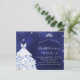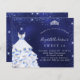 Um convite moderno, na moda e glamouroso para uma doce festa de aniversário 16, 16. Um fundo azul da meia-noite com poeira falsa, uma tiara e um vestido. A cor azul é irregular. O nome é escrito com um moderno estilo escrito à mão. Personalize e adicione os detalhes da sua festa.