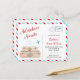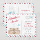 Convite temático de viagem "Aventura Aguarda" em azul e vermelho. Este convite é um cartão postal real que pode ser enviado sem envelope. Você também pode encomendar como uma parte de trás decorativa. Este e outros desenhos semelhantes podem ser encontrados na minha Coleção de Aviões de Viagem em Vermelho e Azul