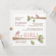 Belas pequenas aves se espalham em meio a galhos florescentes de folhas e flores rosa. Rosa, é uma garota! tem um efeito costurado e os elementos são sombreados para uma aparência dimensional. Muito doce - e deixa seus convidados saberem que uma menina precioso está a caminho!