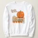 Calor e camisola de Dia das Bruxas. Abóboras, folhas, árvores. Cores de outono/outono.
