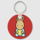 Chaveiro básico com imagem frontal de um doce coelho bebê. Este belo coelho está vestindo pijama de pés azuis com uma bib amarela clara. Outros estilos, tamanhos e cores disponíveis.