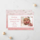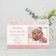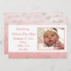 Anuncie a chegada do seu novo pacote de alegria com estes anúncios de nascimento personalizados. Estes anúncios de nascimento maravilhosamente projetados apresentam um fundo rosa claro espalhado com gráficos de flores brancas, uma faixa branca ao redor do centro destaca os detalhes de nascimento do bebê. Use o modelo de texto personalizado para inserir todos os detalhes e uma foto do bebê. envelopes incluídos...