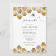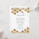 Convite para chá de fraldas, com tema de abelhas, honrando a mamãe! A design apresenta pentes de mel amarelas e douradas com uma ilustração de abelha. Personalize com suas informações ou clique em "Clique para personalizar mais" para editar estilos de fonte, tamanho e cores.