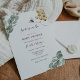 Convite para chá de fraldas, com tema de abelhas, honrando a mamãe! Design apresenta pentes de mel amarelo e dourado e Eucalyptus com ilustração de abelhas. Personalize com suas informações ou clique em "Clique para personalizar mais" para editar estilos de fonte, tamanho e cores.