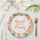 Doce como Pêssego! Chapas de festa de aniversário com pêssegos e xadrezes coloridas de pêssego.