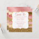 O convite de aniversário chamativo do doce dezesseis da menina feito nos gráficos de um rosa coral e em teste padrão listrado do ouro na folha e no brilho olha. Todo o texto está pronto para personalizar para o dia especial da sua filha. Convite muito bonito para um partido elegante.