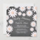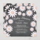 Convite para o chá de fraldas de Verão Primavera moderno, com flores de margarida branca bonito, colocado sobre fundo chic e na moda preto. Sacudir nosso convite para chá de fraldas de margarida para ver um floral de margarida correspondente para um toque especial extra. Excelente para um chá de fraldas para raparigas, chá de fraldas para rapazes ou chá de fraldas neutro em termos de gênero.