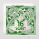Doce 16 Célticos Cartão De Convite. Coração Celta Knot Felegree. Trabalho de arte de Patrimônio Céltico da Irlanda. Princesa Irlandesa Doce Dezesseis. Doce Dezesseis Elegância Verde E Branca.Personalizar
