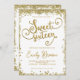 O brilho do ouro falso torna este design perfeito para um 16º aniversário. Este convite é a forma perfeita de convidar amigos e família para a sua celebração de aniversário.